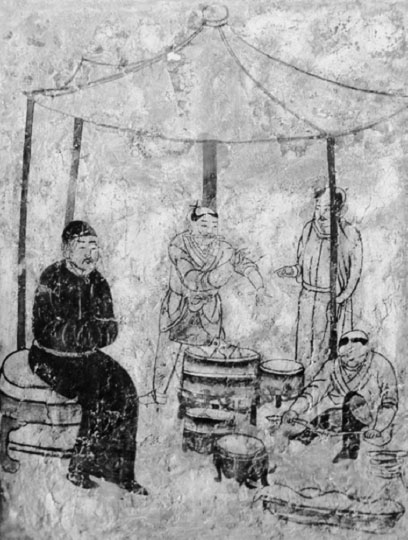 Кидани готовят еду. Ляоская могила в Аохань. X век