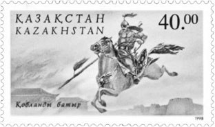 Почтовая марка Казахстана. Кобланды-батыр. 1998