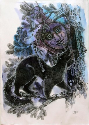 Зверёк принялся карабкаться по стволу, цепляясь коготками за выступы на коре. Лезть по старой ёлке было забавно: иголки щекотали и приятно массировали его шкурку. Талисман остался где-то внизу. Он висел на этой ёлке очень давно, и все, кто его знал, называли её «Ёлка Талисмана», или «Талисманова Ёлка», и водили вокруг неё во время праздников хороводы. «Жалко, что теперь хороводов не будет», – с грустью подумал зверёк. По снегу хороводы не больно-то поводишь. Особенно когда у тебя такие короткие лапки.
