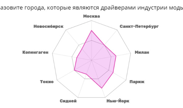Другой примечательный момент, наши эксперты выбрали два самых значимых города моды: Москва и Нью-Йорк. При этом эксперты практически вычеркнули Лондон и Дубай из этого списка, хотя это общепризнанные столица моды, которой, кстати. Москва никогда не была. Вероятно, в современных условиях – российской индустрии моды потребовалась своя столица и Москва подошла как нельзя лучше.