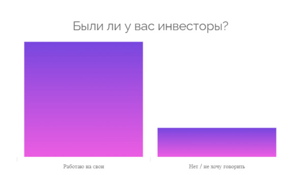 Интересный момент: большинство респондентов ответили что работают на собственные средства, и совершенно никто из них не привлекал инвесторов для открытия бизнеса. Выводов может быть несколько, самый очевидный – что это довольно консервативный рынок, в который инвесторы лишний раз не верят. Во вторых – это рынок, где есть ограничения: все упирается или в конкретного человека или в довольно низкую скорость распространения товаров, бренд из индустрии моды не может так быстро масштабироваться как IT продукты по своей природе. Но и видимо, бизнес в индустрии моды приносит достаточно прибыли, чтобы окупать самого себя без дополнительных вложений.