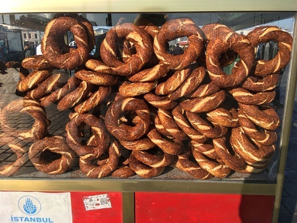 Во время прогулок по Стамбулу повсеместно можно видеть небольшие тележки красного цвета со стеклянной витриной, за которой высится гора золотистых бубликов, щедро посыпанных кунжутом. Я люблю кушать симит, запивая его горячим чаем. При этом все равно, где ты будешь сидеть. Один раз я вкушала этот бублик, сидя на бордюре на пристани. Но больше всего удовольствия получаешь, когда приходишь к Босфору, находишь какой-нибудь удобный камень, усаживаешься на него и жуешь симит, гладя на волнистую рябь воды. Чудесное сочетание бублика и горячего чая дает заряд энергии на весь день. И еще одно несомненное достоинство симита – он поразительно дешев, стоит всего 1,5 турецкие лиры, и цена эта фиксированная, она одинакова у всех продавцов.
