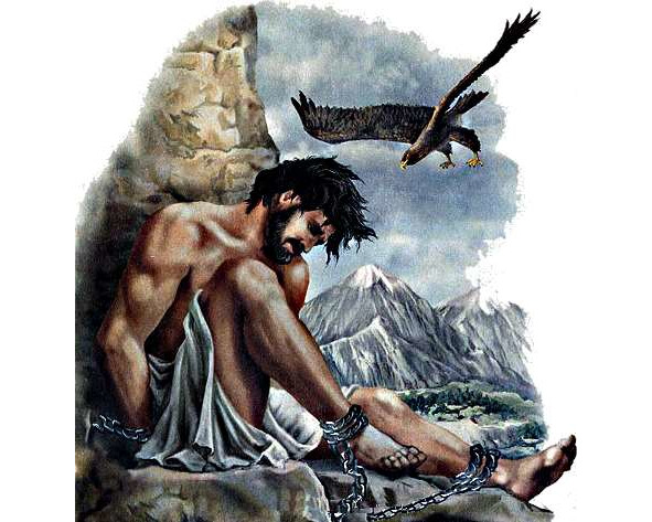 Прометея приковали его к скале, где орел клевал его печень. Это только в сказках боги в основном добрые…