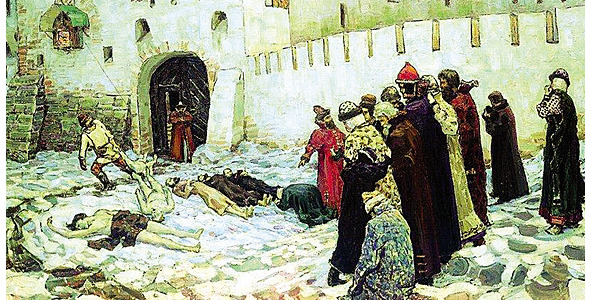 Через строй выгнанных плетьми на мост раздетых донага отроковниц въехал царь в опальный Новгород.