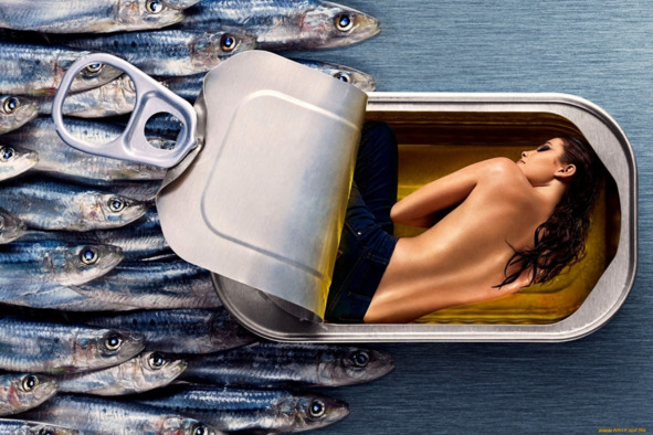 Девушка с баночкой кильки стояла,Стройная милая очень особа,Банка у ног её скромно лежала,Кем-то открытая – явно на пробу.Четко уложены, плотно, рядками,Листик лавровый, накинув как шубку,Кильки, застывшими малость глазами,Девушке нагло смотрели под юбку!Картина продолжала стоять в моих глазах, и я уже хотел добавить, что и сам бы не прочь оказаться на месте той кильки или что-то подобное, однако вовремя остановился.