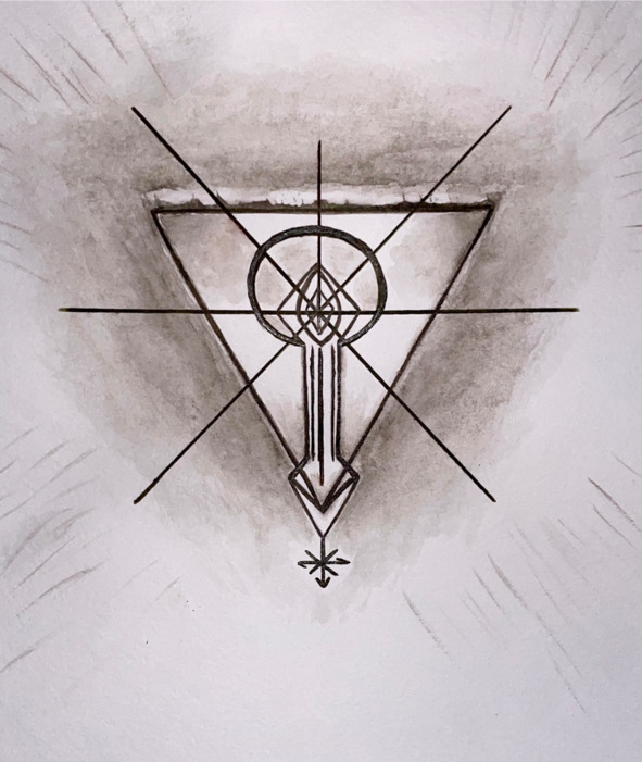 Рисунок Ключи удивительным образом стал неким откровением как для самой меня, так и для первых, кто его увидел. Изначально был нарисован лишь один треугольник в направлении вниз, но через год после события Великого перехода и смены времени с линейного на спиральное, рисунок запросил дополнить его и добавить еще один треугольник с направлением вверх.