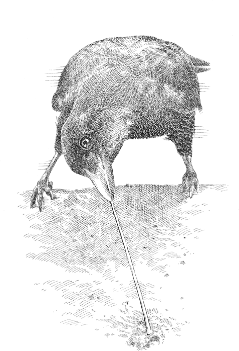 Но даже в такой сметливой компании новокаледонские вороны выделяются своим мастерством. Хотя они не могут похвастаться таким же разнообразием инструментов, как шимпанзе и орангутаны, они изготавливают свои инструменты с поразительной точностью, причем из самых разнообразных материалов. Они делают их нужной длины и диаметра в точном соответствии с конкретной задачей и могут модифицировать их для решения новых задач. Они способны изобретать. И использовать последовательно несколько инструментов, как это сделала ворона 007 при решении восьмишаговой головоломки. Но, возможно, самое главное, они умеют изготавливать и использовать ловчие крюкообразные инструменты, что помимо них делают только люди.
