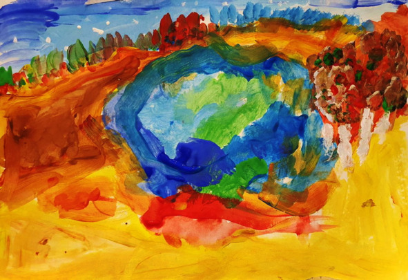 Солнца лучТеперь играетНа картине у меня.ОзерцоСлегка сияетВ свете красочного дня.Ветра шумИ шорох листьев,Пенье птиц, летящих ввысь —На листок,Волшебной кистью,Чудом вдруг перенеслись.Да, пейзажКак настоящий —Оживает мир цветной.Краской дня,Мазком летящим,Поделилась кисть со мной.