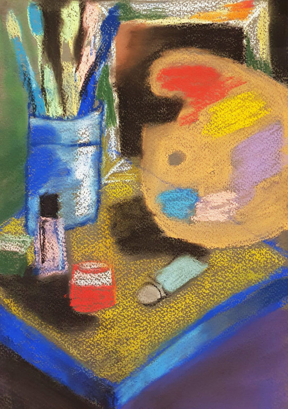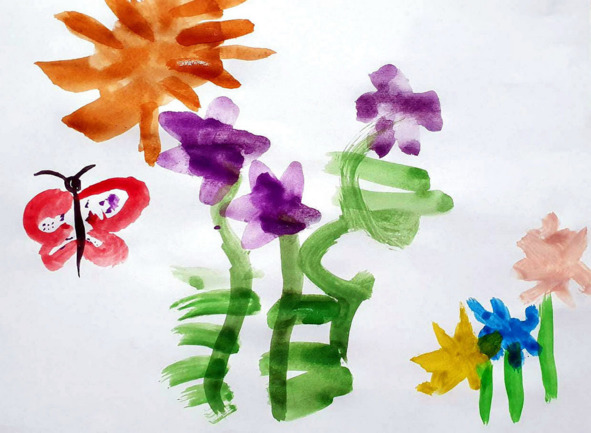 Волшебная кистьМир цветнойНа лист бумагиКистью я перенесу —Здесь луга,Леса, овраги…Сверху брошу бирюзу.