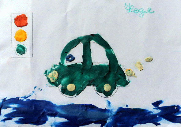 Светофор – цветные глазкиСветофор – цветные глазки,Нам покажет свои краски.Нарисуем светофорИ продолжим разговор.Каждый знает с детских пор,Что такое светофор:Красный, жёлтый и зелёный, —Словно пирожок слоёный.С красным цветом верхний глаз —Самый строгий он у нас.Как зажёгся красный свет —«Стой! Вперёд дороги нет!»В серединке есть желточек,Словно солнышка кусочек.Жёлтым глазиком моргает —Нам идти не разрешает.Подождём зелёный свет —Говорит он всем: «Привет!На меня вперёд иди,Но по сторонам гляди!»Повторяем ещё раз:Стой на месте – красный глаз!Жёлтый – подождём немножко,А зелёный – в путь-дорожку.