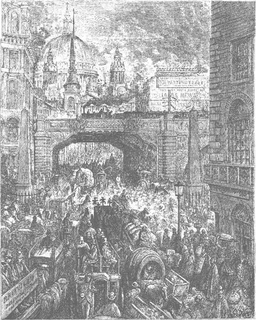 Транспортная «пробка» на Ладгейт-хилле во второй половине XIX в., изображенная французским художником Гюставом Доре.
