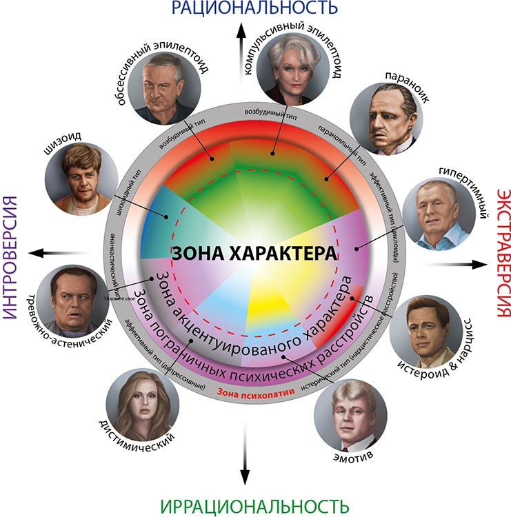 Соответственно этому на двух полюсах – в зоне характера и в зоне акцентуации – образовались пары, по мере усиления переходящие одна в другую.