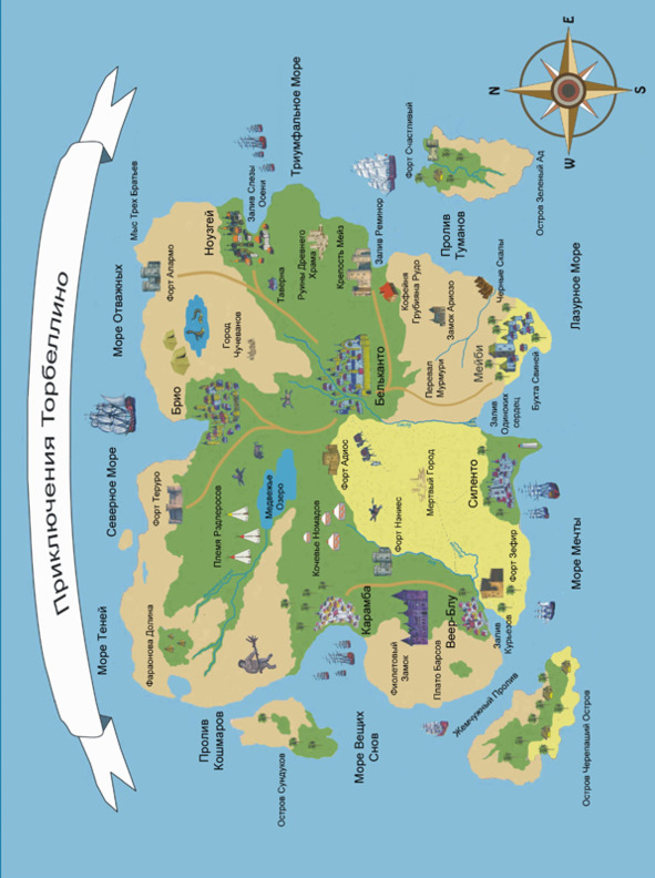 Так вот, наша удивительная земля со всех сторон омывается несколькими морями. С севера – Морем Отважных, Морем Теней и Северным Морем, с востока – Триумфальным, с юга – Лазурным и Морем Мечты, с запада – Морем Вещих Снов.