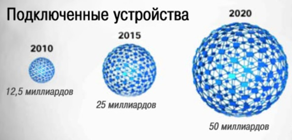 Ожидается, что в бизнесе и промышленной сфере станут работать десятки миллиардов устройств – разного рода датчиков для оборудования, терминалов для продаж, сенсоров на транспорте и в производстве.