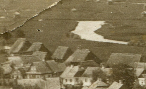 Старый Каменец. «Интересен ряд домов ближе к реке, расположенных вдоль берега, с высоченной крышей, покрытой тростником или соломой. Любопытно, что в этих домах нет „комина“ (печной трубы), и не факт, что они топились „по-чёрному“ и даже не факт, что эти сооружения предназначались для жилья. Полагаю, что в этих домах жили коренные каменчане, потомки тех, которые из волынских земель переселились после основания Каменца князем Владимиром Васильковичем. Кстати, пару слов о богатстве мещанина: если крыша жестяная – богач; крытая „гонтай“ (деревянные дощечки) – середняк; тростник – белорус, „тутэйшы“ (такая градация, конечно же, условна)». Андрей Осташеня. 14.02.2018. Источник: https://kamenets.by/intimnyie-podrobnosti-odnogo-foto/