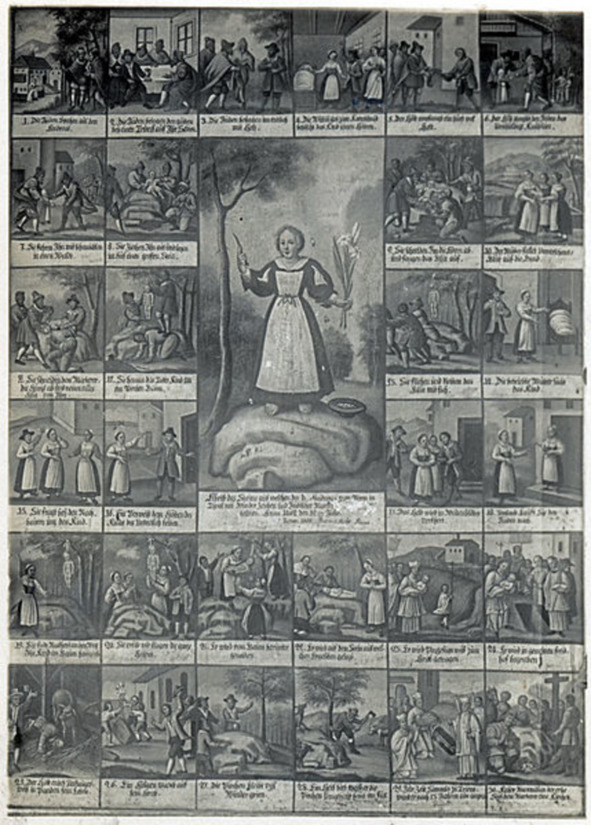 История еврейского ритуального убийства, изображенная в церкви Юденштайн, Австрия. Открытка с изображением картины начала 19 века. Автор Бартлма Майр