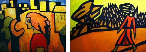 Картины беларуского художника Израиля Басова. Картины 80-е «Девушка в городе» и «Девушка в красном» Израиля Басова. Источник: https://onlyfacts.ru/articles/avangardist-israel-basov