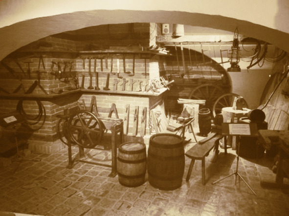 «заторный чан, пивоваренный котел, который служил для выварки затора, фильтрационный чан, в котором происходило отцеживание сусла от пивной дроби, и сусловаренный котел, предназначенный для отварки сусла с хмелем».