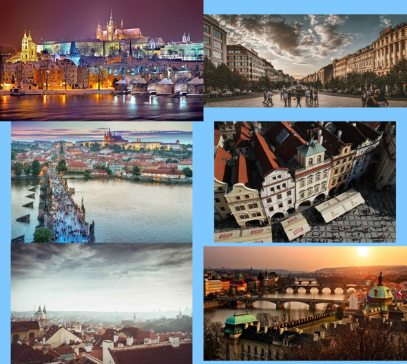 «Прага – столица Чехии; крупнейший мегаполис и популярнейший туристический центр Европы, ежегодно принимающий более 6 миллионов гостей. В этом элегантном и доброжелательном городе мечтает побывать каждый, кто хоть немного разбирается в красоте архитектуры и пиве. С давних времён Прага считается прекраснейшим городом Европы, об этом красноречиво говорят её названия – „злата Прага“, „каменная мечта“, „город ста шпилей“. Прага – это узкие мощёные улочки, изумительный Карлов мост, масса уникальных достопримечательностей, незабываемая чешская кухня». [7]