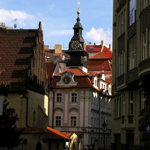 «Башня ратуши была построена благодаря особой привилегии, данной Фердинандом II евреям в 1648 году в благодарность за помощь жителям Старого Места во время осады Праги шведами». Источник: https://sluchaynosty.livejournal.com/344813.html