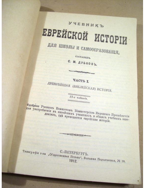 С.М.Дубнов. Учебник по Еврейской истории. 1912. Источник: https://newauction.com.ua/offer/s_m_dubnov_kratkaja_istorija_