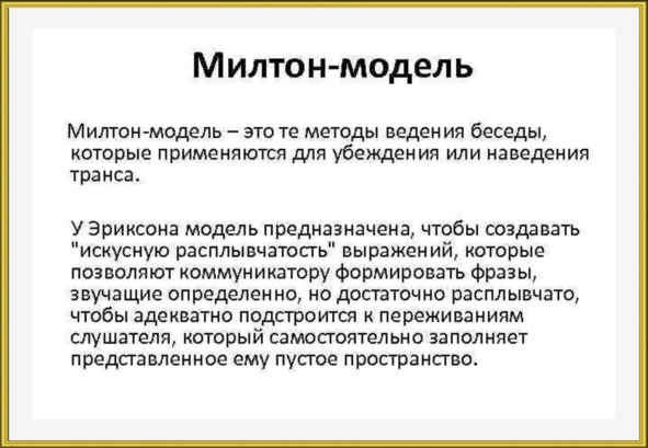 Освоив модель Милтона, вы сможете работать напрямую с подсознанием вашего объекта. Так что давайте запустим это шоу в путь!