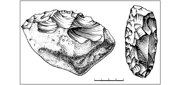 Рис. 2. Каменные орудия раннего палеолита, ашельская стадия – 1.76 млн – 150/120 тыс. лет назад (источник изображения – Прасолов 1984: 112)