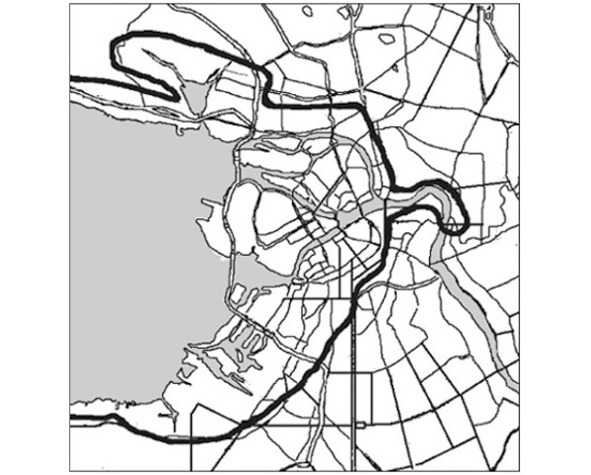Рис. 8. Береговая линия Литоринового моря на территории Петербурга (рисунок автора)
