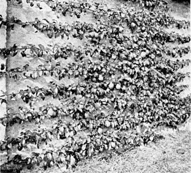 FIG. 6—PLUMS AS UPRIGHT CORDONS, SET TWO FEET APART