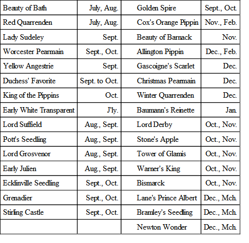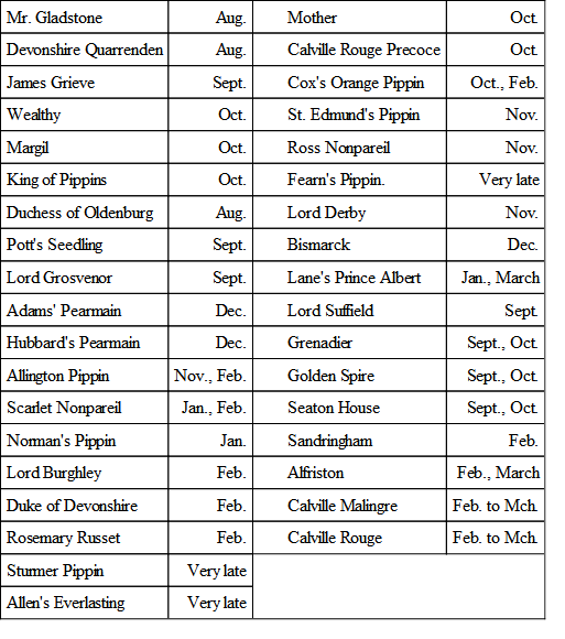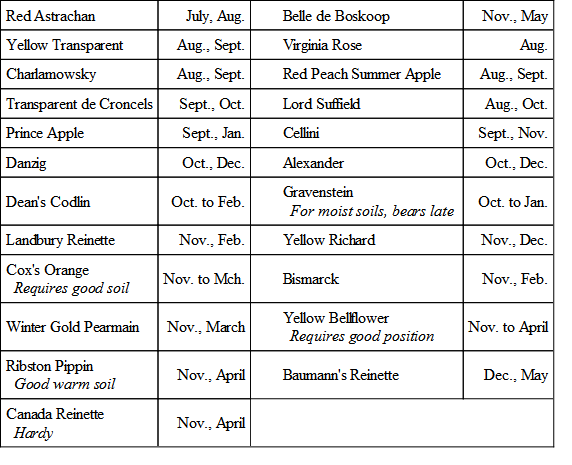 In Europe, where greater attention has been paid to these matters, the opinion has settled down to a comparatively limited number. For example, Mr. George Bunyard in "The Fruit Garden" recommends the following varieties for cordons: