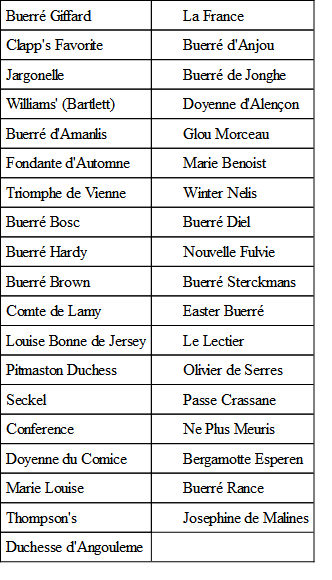 In European nurseries the list of pears propagated on quince roots is much larger. The following varieties are recommended for England by Mr. Owen Thomas, and are said to be particularly good for training on walls: