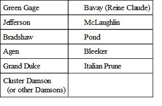 In the form of espaliers plums are often trained against walls. Indeed this is the favorite way of producing fancy plums in England, and the same practise prevails to a considerable extent on the continent of Europe. In this country walls are not required, and in most cases would be of no advantage. Where it is desired to cover back fences or sides of buildings, however, plum trees in espalier form can be confidently recommended. The Domestica varieties of highest quality such as Bavay, Jefferson, Victoria, Pond, Bradshaw, and Coe's Golden Drop would have first choice. The Japanese varieties can also be grown on trellises or walls, but the freer forms, such as the fan espalier used for the peach, are better suited to their habits of growth.