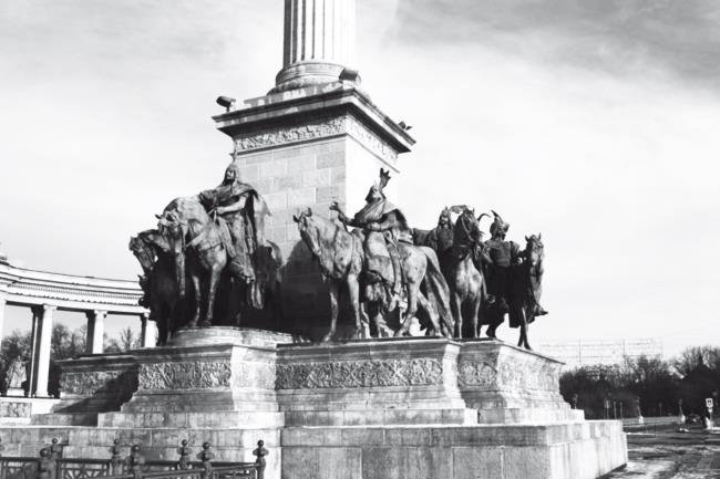 Центр композиции – 36-метровая колонна, увенчанная фигурой архангела Гавриила – хранителя Венгрии. Эта работа получила Гран-при на Всемирной выставке в Париже в 1900 году. У подножия колонны расположились конные скульптуры нашего доброго знакомца, предводителя венгров Арпада и его сподвижников, семерых вождей древних племён, – тех, кто пришёл с Востока и обосновался на нынешней венгерской земле.