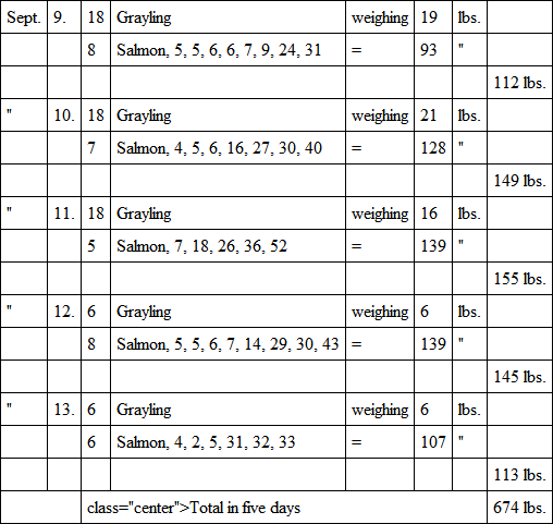 Herman Renfors was then the best fisherman in Finland. He told us that during five days, in September 1885, – things are not nearly so good as this nowadays – he caught the following: —