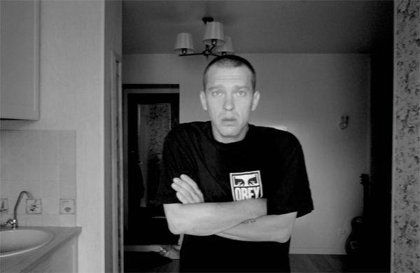 На секунду – автор в том дне. День рождения, исполнилось 35 лет, проснулся в гостях у К. Сперанского. Пока тот спал, сфотографировал часть комнаты: окно, стену, отклеивающиеся обои, постер, похищенный коллегой в варшавском хостеле, с рекламой романа «Серотонин», портреты Беньямина и Бодлера, пришпиленные на канцелярские кнопки.