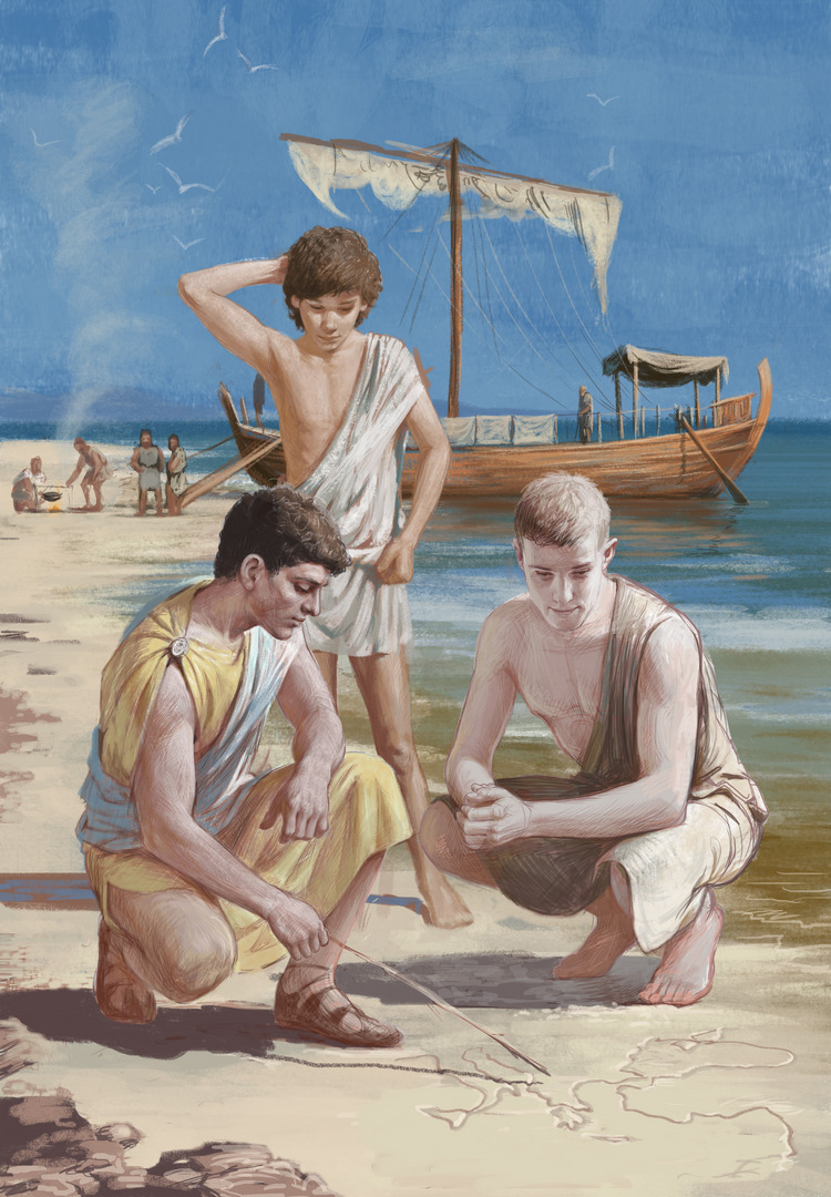 Леше еще осталось понять, сколько лет отделяет его от Александра Македонского. Энеас совершенно не разбирался в текущей геополитической обстановке. Однако неторопливое путешествие через Гелеспонт подарило Алексею отличную идею. Он даже расстроился, что не додумался до этого раньше. На первом же привале он подсел к Энеасу, взял в руки палочку и принялся рисовать на песке очертания Европы и Средиземного моря. Мальчик с любопытством косился на его картографические потуги.