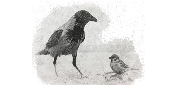 «Кто обидел Ваську?» – в панике пичужки.«Кто обидел Ваську – съел кусочек сушки?!»Васька сел под стрехой, грустно Ваське стало… —«Толстая ворона – чтоб она пропала!Мне немного надо – поклевал, и только.А она! Ворюга!.. Из-под носа! Дольку!Снова с голодухи под луной не спится.Хочется чирикнуть: Я ведь тоже – птица!..»