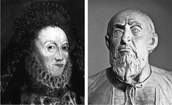 Слева – прижизненный портрет Королевы Елизаветы. Автор неизвестен. Справа – реконструкция по черепу царя Ивана IV. Скульптор – Герасимов М. Фотографии взяты из открытых источников.