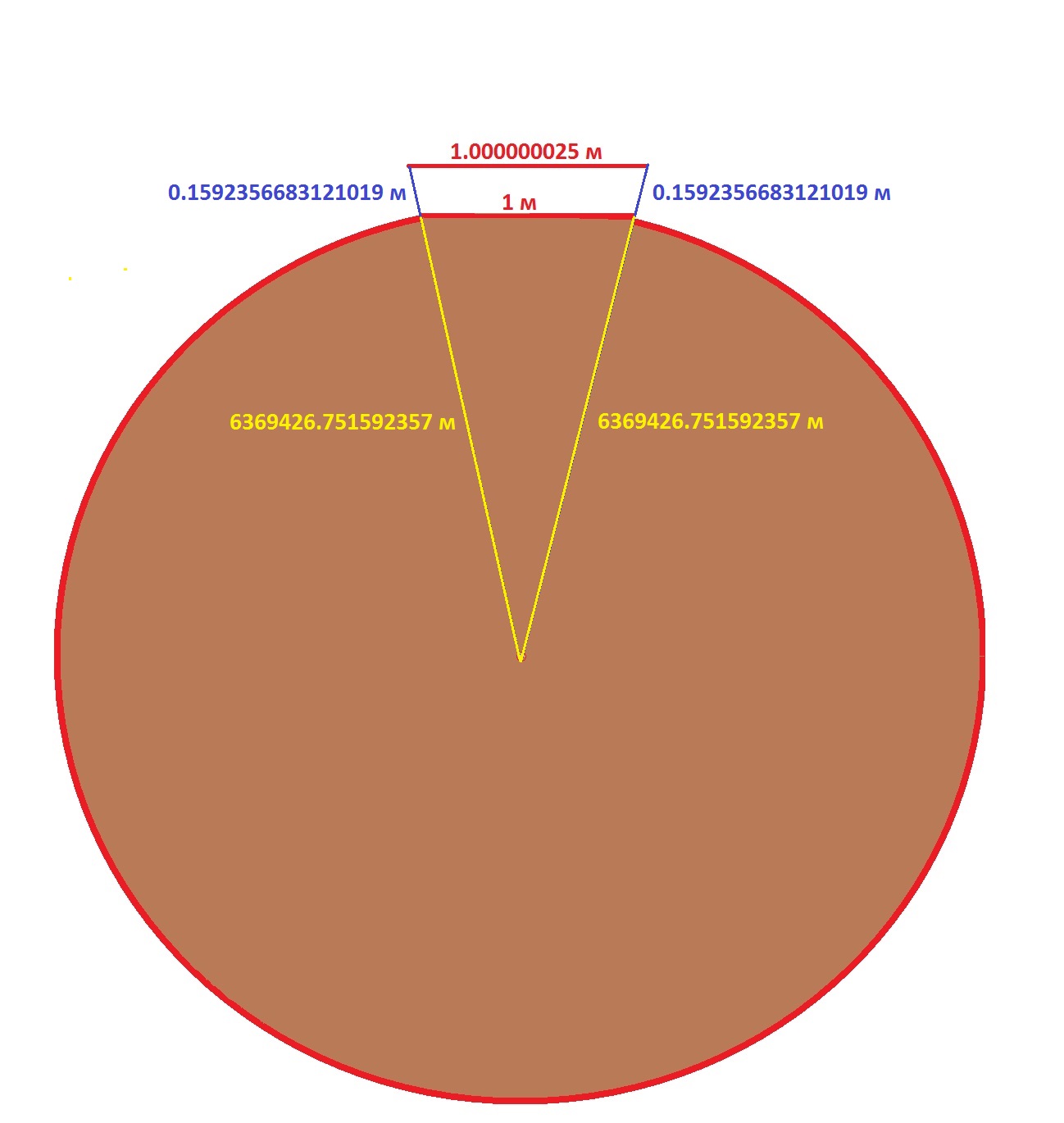 Предположим, что земной шар по экватору плотно обтянут веревкой. Длину веревки увеличили на 1м. Образовавшийся зазор равномерно распределен по экватору. Сможет ли в этот зазор прошмыгнуть мышь? Можно сделать мысленный эксперимент. Верёвка1 туго натянута вокруг Земного Шара по Экватору. Разрежем верёвку1, поднимем концы длиной 50см вертикально, Между поднятыми концами Верёвки1 будет проход шириной 100см, горизонтальная часть так и остаётся плотно притянутой к поверхности Земли, и пришьём к вертикальным концам верёвку2 длиною 1 метр. Пренебрегая толщиной верёвок, мы можем сказать что в этом месте комбинированная(новая) верёвка имеет проход размерами 100см в ширину и 50см в высоту. В такую щель и кошка и мышка и собака и математик пролезет. А вот если условия будут требовать равномерного распределения верёвки по длине Экватора, то этого дополнительного 1метра не хватит. Используем такой дополнительный 1метр в четырёх местах, получим 4 щели с размерами 25см в ширину и Двенадцать С Половиной см в высоту. Используем в пяти местах, получим 5 щелей с размерами 20см в ширину и 10см в высоту. Используем в десяти местах, получим 10 щелей с размерами 10см в ширину и 5см в высоту. Используем в ста местах, получим 100 щелей с размерами 1см в ширину и 1/2см в высоту. Используем в тысяче местах, получим 1000 щелей с размерами 1мм в ширину и 1/2мм в высоту. Ну и так далее, пока весь Экватор не заполнится. Если разрезать верёвку и поставить левый метровый кусок под углом 60 градусов, а также поставить правый метровый кусок под углом 60 градусов, то получится равнобедренная трапеция с основанием 2 метра. Верхнее основание будет равно 1 метру и там уместится дополнительная метровая верёвка. Мы получим трапецеидальную арку высотой в 866мм. Если использовать трапеции то они будут уменьшаться в размерах по мере рoста мест расположения. И очень скоро превратятся в нано-трапеции. А можно пойти и по другому пути. Длина Экватора 40000000 метров. Мы создали щель с размерами 1 метр в длину и 50см в высоту. На каждый метр Экватора мы займём высоту этой щели. 500мм/40000000 = 5мм/400000 = 1мм/80000 = 0.0000125мм. Это 0.0125 микрон. Толщина волоса человека рaвна 50 микрон. Ещё вариант. Для того чтобы равномерно распределить этот 1метр дополнительной верёвки, добавим кусочек от этой верёвки в каждый метр основной верёвки. В основной верёвке 40 000 000 метров. Разделим 1метровую верёвку на 40 миллионов кусочков, каждый размером 0.025 микрон. Даже если мы будем подкладывать под основную верёвку один такой кусочек каждый метр, то это её не поднимет. Можно обобщить задачу. Скажем так....Длина Экватора 40 000 000 метров. Если плотно обтянуть предмет верёвкой1 и добавить к ней верёвку2 длиной 1/40000000(одна сорокамиллионная)от длины верёвки1, насколько изменится натяжение верёвки? Можно проверить и практически. Ослабить гитарную или рояльную струну так, что длина увеличится на одну сорокамиллионную и послушать как изменится звук :) Большие цифры завораживают и мы не верим результатам…Если не думать о Глобусе то будет легче :) Снимем верёвку с Экватора и сделаем из неё равносторонний треугольник. Сторона равна 13333333.33333333 метра. Высота 11547005.383792 метров. Добавим 1 метр к периметру. Теперь сторона равна 13333333.66666667 метра. Высота 11547005.672467 метров. Разница в высоте треугольников 0.288675 метра. Как только мы возвращаемся к Глобусу, наш разум не хочет верить резул