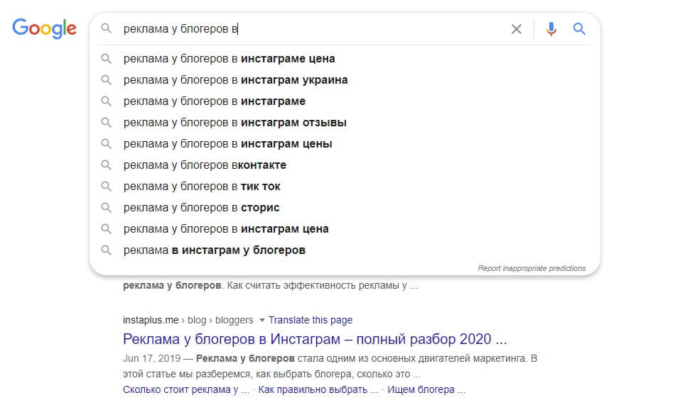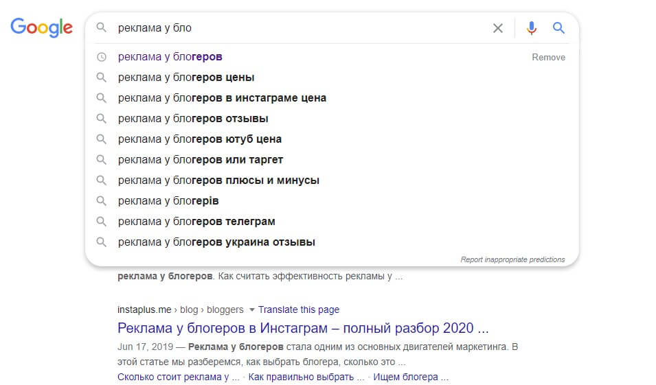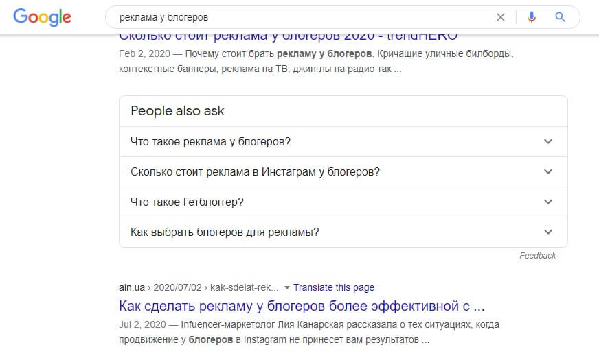 Это важно, потому что веб-сайты, как правило, оптимизируют теги заголовков, поэтому ясно, что сайты-лидеры поисковой системы, уже проанализировали популярные запросы, обнаружив, что запрос «реклама у блогеров» наиболее популярный способ найти нужную информацию.
