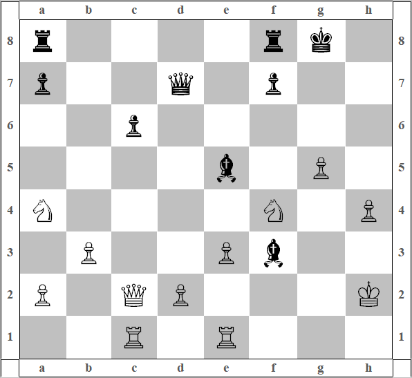 4. Переведите шахматное уравнение: слон + слон = конь + конь + пешка в выгодное неравенство для Черных (в данной партии у них два слона).