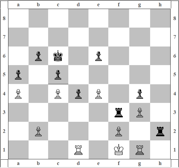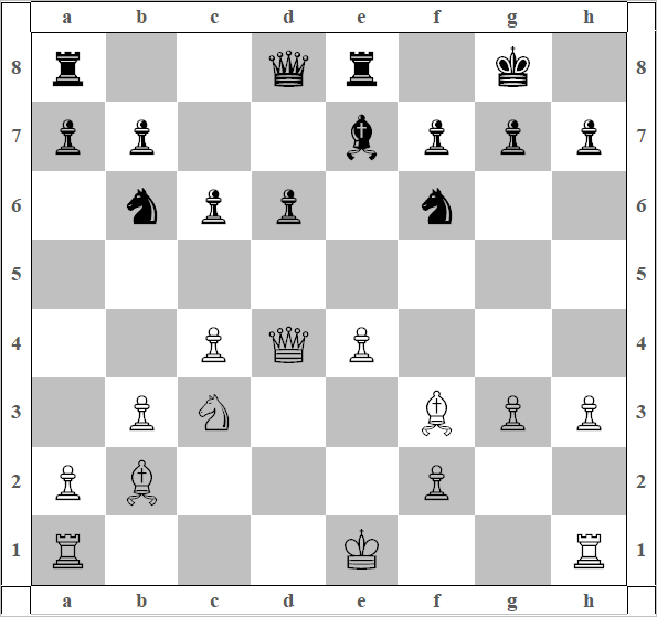 21) Лb1 c6, 22) Л:b5 cb, и воображаемая диаграмма 0.