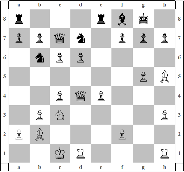 13) Kbd2 Kh5, 14) g3 Фf7, 15) Фе2 Лad8, 16) Kh4 d5! Очень идейно!