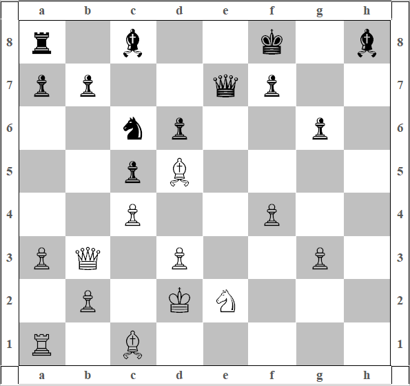 2) Чёрные дважды возьмут на f5 и пойдут затем Ле5 – замок на доске построили Чёрные фигуры, плюс с лишней пешкой (0–1);