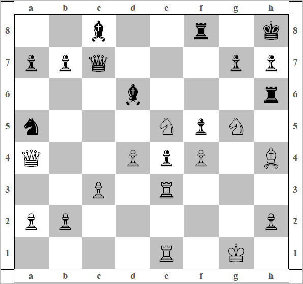 Вот Белые и доминируют на доске. Вынужденный, но всё-таки контрудар Чёрных. Белые сами хотели пройти на h5. 26) …h5. Чёрные вложились в контрудар. Кажется, Белые просчитались и не заметили пешечного тычка. Так иногда бывает. Грандиозность замысла разбивается об реальность жизни. Но не в этом случае: