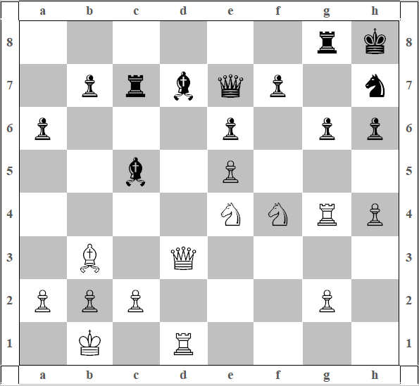 11) Cb3 Ce7, 12) Крb1 Cd7, 13) f4 Лс8, 14) Лhe1 Лс5, 15) Фe2. Судя по скорости исполнения, эта позиция снова знакома, причём обоим соперникам сразу. Правда, пару минут над 15) Фе2 Алиреза подумал (диаграмма 47). Подумаем и мы над позицией, причём за оба цвета.