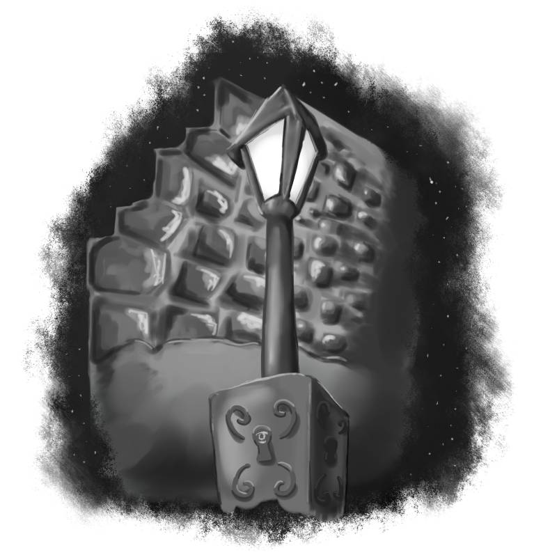 Тут действительно стоял фонарь. Старинный, с массивным каменным основанием. Старой шубой его покрывали хлопья облупившейся зеленой краски.