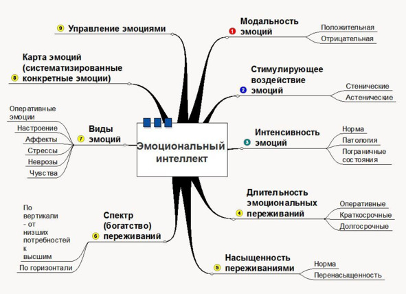 Сочетание характеристик эмоций по модальности, длительности и интенсивности формирует виды эмоций (с корректировкой на особенности личности, среды и сложившихся состояний), что можно условно выразить логическими выражениями:
