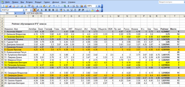 В приведенном примере (рисунок 2) показаны результаты по итогам четверти, но в нашей практике рейтинг подсчитывается систематически с периодичностью 1 раз в две недели. Таким образом можно отследить динамику индивидуальных достижений обучающихся. Своевременно обнаруживать «провалы» и реагировать на них. Полученные результаты обсуждаются с обучающимися и их родителями. Первые 10 позиций в рейтинге публикуются в АИС «Сетевой город» для всеобщего доступа.