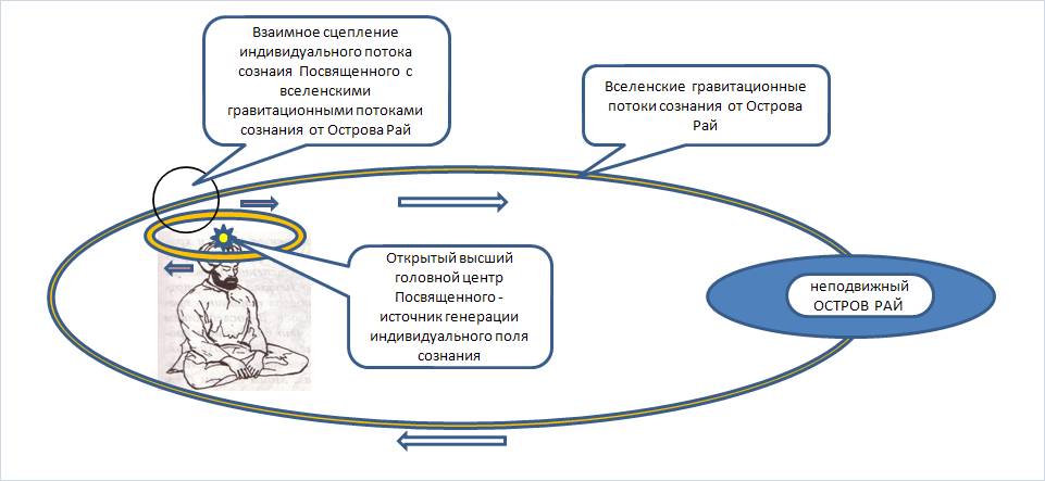 ОН является Наставником человека, идущим к высокой цели стать кандидатом на вечную жизнь, чтобы мы стремились стать похожими на него, Бога Отца. Именно Он, в конечном итоге, впитывает всю информацию о жизни в плотном, физическом мире индивидуального Духа. Что это означает? Вспомним еще раз: основная задача любого смертного человека Земли, как в прочем и других, похожих на Землю многочисленных эволюционных планет проявленного плана бытия, является расширение Сознания своей личности до стадии осмысленного слияния со своим персональным Настройщиком Мышления, с целью максимальной передачи ему информации о жизни в проявленном, плотном, физическом мире. Этот путь является одним из пунктов огромной программы Бога Отца Единого, в части духовного развития индивидуальных смертных волевых сознаний животного происхождения, не только Земли, но и других многочисленных планет. В конечном пункте этого длинного пути обучения волевых, созданий, Бог Отец хочет получить совершенно новый отряд из большого количества Духов, прошедших опыт жизни в физических мирах. Их опыт для него очень важен. ОН, Бог Отец, предполагает использовать этих Духов в своей огромной и величественной задаче преобразования внешнего, за границей его периферийного, Пространства. Там, в новых мирах, им будет отведена руководящая и направляющая роль в эволюции уже иных существ. Важная мысль! Тот практикующий Стремящийся к Высшему Знанию, который силой своего Волевого Устремления, и с помощью определенных методик, сумеет практически открыть, активизировать свои высшие головные центры, свой высший головной центр Сахасхара, такой практикующий мистик запускает свой центр на генерирование своих личностных потоков сознания. Эти личностные потоки сознания, уже Посвященного, осуществляют взаимное сцепление со всеобщими потоками гравитации сознания, Разума, которые исходят из центра всего Творения, неподвижного острова Рай. При создании взаимного потока сцепления Посвященного с общими потоками гравитации разума Единого Отца, Посвященный приобретает бессмертие! Атомы, сначала его энергетического тела, а затем и физического получают неиссякаемую подпитку энергией Рая. И Посвященный может жить и трудиться на благо всего человечества, в деле реализации Планов Бога Отца Всевышнего, бесконечно долго, практически вечно. Как только Посвященный сделает какой-либо греховный проступок, он будет тот час же отключен от контуров всеобщей гравитации разума, и опять перейдет в категорию простых, смертных, эволюционирующих людей. При этом его высший головной центр Сахасхара будет принудительно прикрыт. Бывший, оступившийся Посвященный, будет низвергнут с «небес» на грешную землю. Так произошло с Адамом и Евой, при отступлении их от реализации Божественного эволюционного плана на нашей грешной планете. Но это уже иная история, ее можно почерпнуть в «Книге УРАНТИИ».